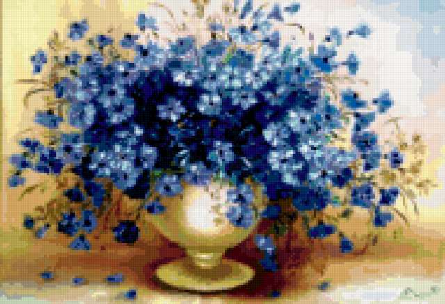 Ориентировочно так, схема вышивки «Цветочки», созданная автором lapyshok, будет выглядеть при отшиве на канве. Размер данной вышивки равен 190x130 крестов, при этом используется 86 цветов. Ключевые слова, по которым можно найти эту схему: цветочки. Также, вы можете взглянуть на оригинальную картинку, соответствующую данной схеме вышивки.