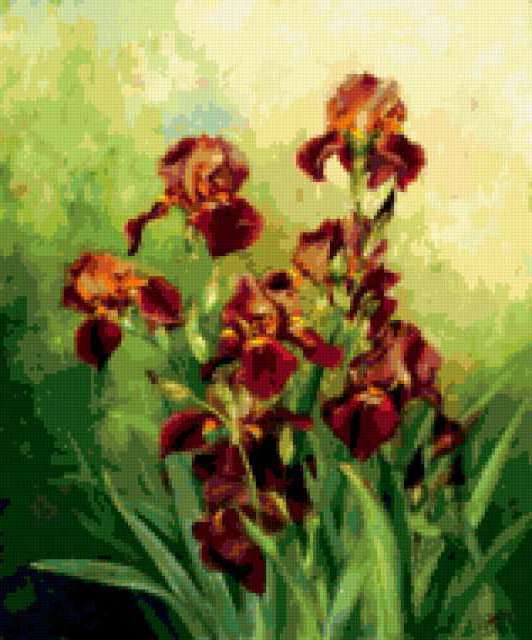 Ориентировочно так, схема вышивки «Цветочки», созданная автором lapyshok, будет выглядеть при отшиве на канве. Размер данной вышивки равен 158x190 крестов, при этом используется 63 цветов. Ключевые слова, по которым можно найти эту схему: цветочки. Также, вы можете взглянуть на оригинальную картинку, соответствующую данной схеме вышивки.