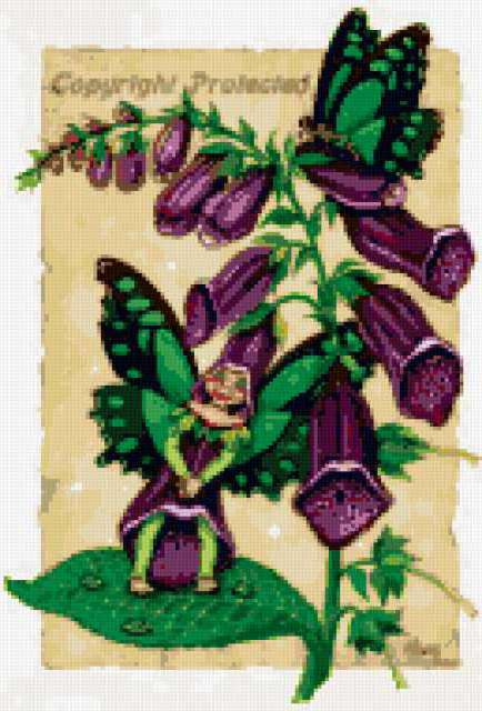 Ориентировочно так, схема вышивки «Цветочные феи», созданная автором poltanya, будет выглядеть при отшиве на канве. Размер данной вышивки равен 129x190 крестов, при этом используется 31 цветов. Ключевые слова, по которым можно найти эту схему: фея, цветочные феи, феи, сказка, фантазия, детские сюжеты, цветы, красота, бабочка, колокольчик. Также, вы можете взглянуть на оригинальную картинку, соответствующую данной схеме вышивки.