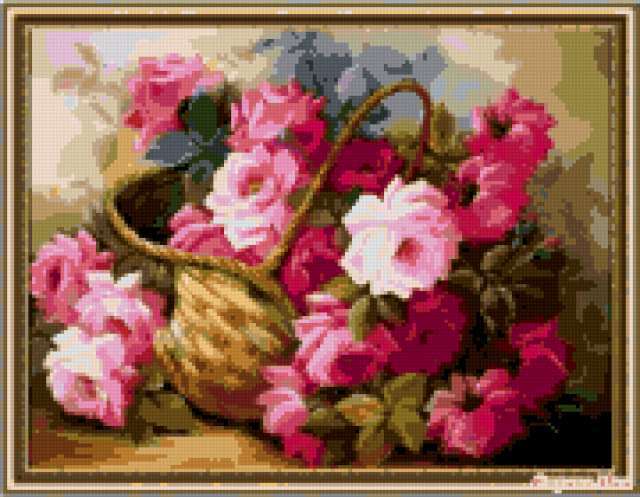 Ориентировочно так, схема вышивки «Цветы», созданная автором Wecna, будет выглядеть при отшиве на канве. Размер данной вышивки равен 180x140 крестов, при этом используется 51 цветов. Ключевые слова, по которым можно найти эту схему: цветы. Также, вы можете взглянуть на оригинальную картинку, соответствующую данной схеме вышивки.