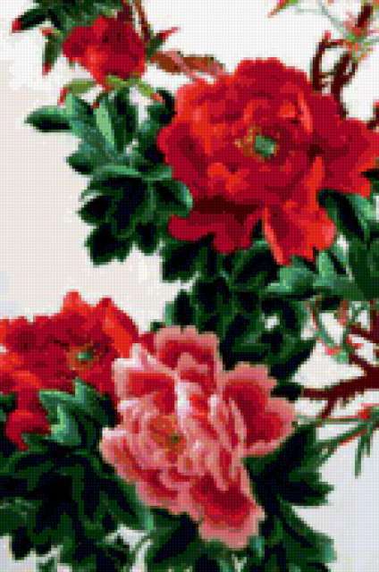 Ориентировочно так, схема вышивки «Цветы», созданная автором meletopol, будет выглядеть при отшиве на канве. Размер данной вышивки равен 126x190 крестов, при этом используется 63 цветов. Ключевые слова, по которым можно найти эту схему: букет. Также, вы можете взглянуть на оригинальную картинку, соответствующую данной схеме вышивки.