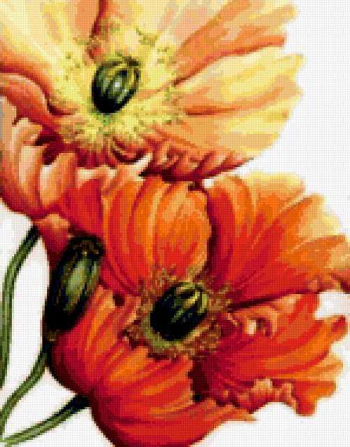 Ориентировочно так, схема вышивки «Цветы», созданная автором marusya84, будет выглядеть при отшиве на канве. Размер данной вышивки равен 149x190 крестов, при этом используется 69 цветов. Ключевые слова, по которым можно найти эту схему: цветы, цветок, букет, мак, маки. Также, вы можете взглянуть на оригинальную картинку, соответствующую данной схеме вышивки.