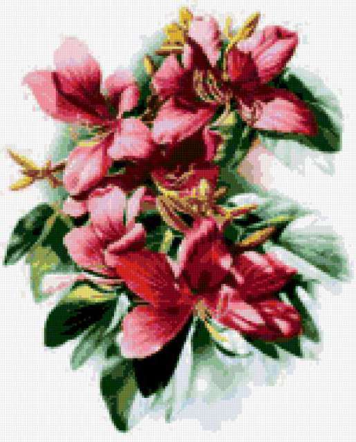 Ориентировочно так, схема вышивки «Цветы», созданная автором poltanya, будет выглядеть при отшиве на канве. Размер данной вышивки равен 153x190 крестов, при этом используется 43 цветов. Ключевые слова, по которым можно найти эту схему: цветы, цветок, картина, флора, растения, красота, картина, панно, тропические цветы. Также, вы можете взглянуть на оригинальную картинку, соответствующую данной схеме вышивки.
