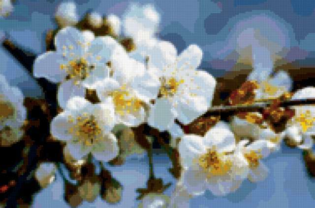 Ориентировочно так, схема вышивки «Цветы», созданная автором nastya9225, будет выглядеть при отшиве на канве. Размер данной вышивки равен 190x126 крестов, при этом используется 78 цветов. Ключевые слова, по которым можно найти эту схему: цветы, весна. Также, вы можете взглянуть на оригинальную картинку, соответствующую данной схеме вышивки.