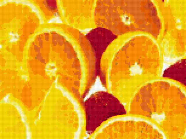Ориентировочно так, схема вышивки «Цитрусовые», созданная автором Brassica, будет выглядеть при отшиве на канве. Размер данной вышивки равен 153x115 крестов, при этом используется 31 цветов. Ключевые слова, по которым можно найти эту схему: лимон, цитрусовые. Также, вы можете взглянуть на оригинальную картинку, соответствующую данной схеме вышивки.