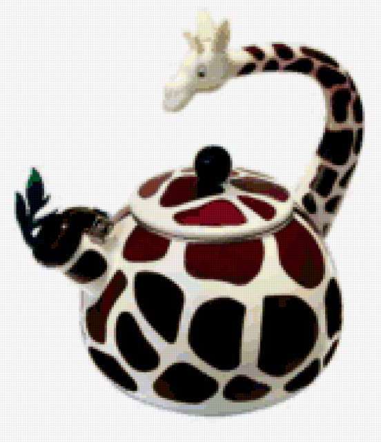 Ориентировочно так, схема вышивки «Чайник», созданная автором cviktoriyac, будет выглядеть при отшиве на канве. Размер данной вышивки равен 164x190 крестов, при этом используется 61 цветов. Ключевые слова, по которым можно найти эту схему: картина, кухня, игрушки. Также, вы можете взглянуть на оригинальную картинку, соответствующую данной схеме вышивки.