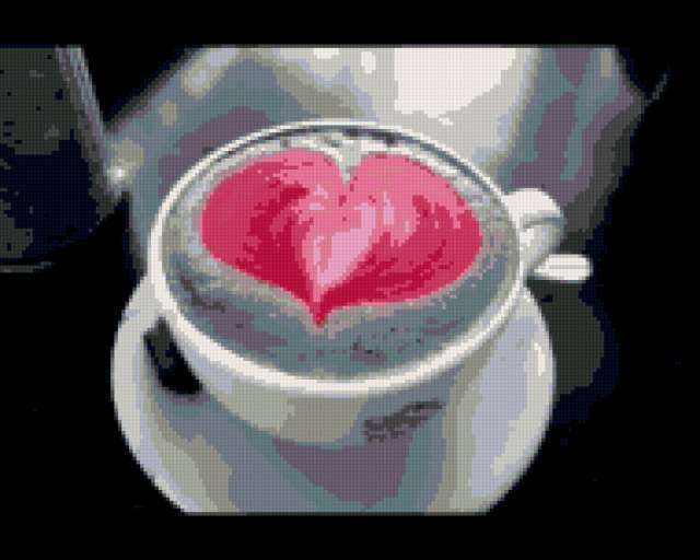 Ориентировочно так, схема вышивки «Чашка», созданная автором Taja, будет выглядеть при отшиве на канве. Размер данной вышивки равен 190x152 крестов, при этом используется 22 цветов. Ключевые слова, по которым можно найти эту схему: сердце, любовь. Также, вы можете взглянуть на оригинальную картинку, соответствующую данной схеме вышивки.