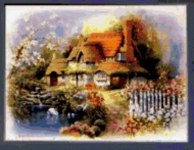 Ориентировочно так, схема вышивки «Чудный домик», созданная автором Svetla_Nochka, будет выглядеть при отшиве на канве. Размер данной вышивки равен 190x147 крестов, при этом используется 79 цветов. Ключевые слова, по которым можно найти эту схему: дом, природа, пейзаж, дома, строения. Также, вы можете взглянуть на оригинальную картинку, соответствующую данной схеме вышивки.