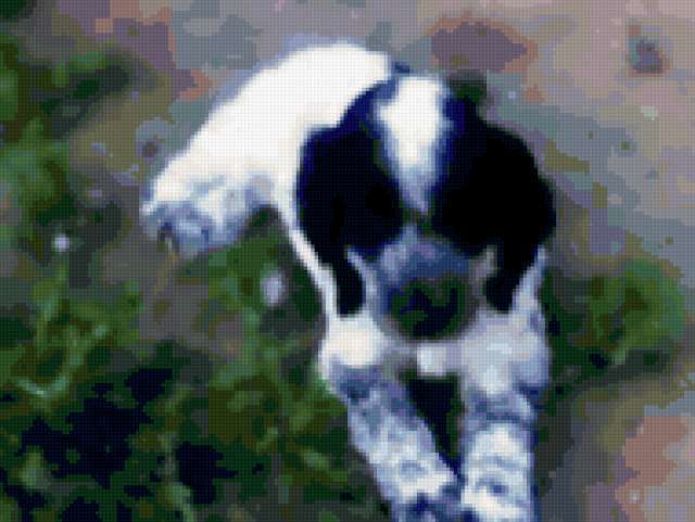 Ориентировочно так, схема вышивки «Щенок», созданная автором Svetlana_NS, будет выглядеть при отшиве на канве. Размер данной вышивки равен 190x143 крестов, при этом используется 59 цветов. Ключевые слова, по которым можно найти эту схему: щенок, собака, животные. Также, вы можете взглянуть на оригинальную картинку, соответствующую данной схеме вышивки.