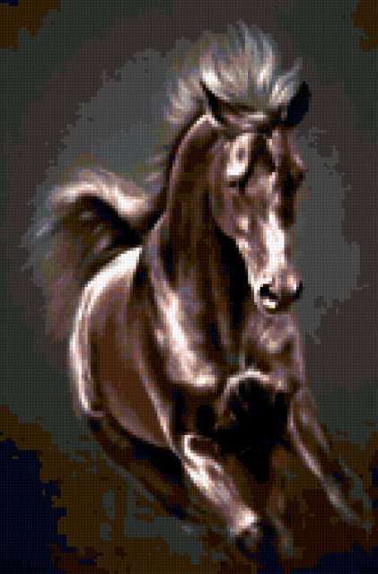 Ориентировочно так, схема вышивки «Энергия», созданная автором RumaWka, будет выглядеть при отшиве на канве. Размер данной вышивки равен 125x190 крестов, при этом используется 42 цветов. Ключевые слова, по которым можно найти эту схему: животные, лошадь, конь. Также, вы можете взглянуть на оригинальную картинку, соответствующую данной схеме вышивки.