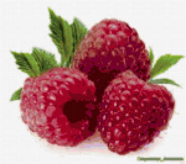 Ориентировочно так, схема вышивки «Ягода малина», созданная автором Ivgaochka, будет выглядеть при отшиве на канве. Размер данной вышивки равен 150x133 крестов, при этом используется 57 цветов. Ключевые слова, по которым можно найти эту схему: ягоды, малина. Также, вы можете взглянуть на оригинальную картинку, соответствующую данной схеме вышивки.