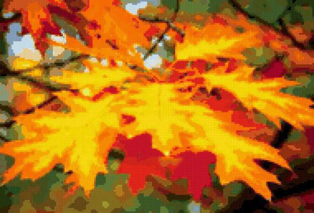 Ориентировочно так, схема вышивки «Яркая осень», созданная автором eva-ms, будет выглядеть при отшиве на канве. Размер данной вышивки равен 190x129 крестов, при этом используется 42 цветов. Ключевые слова, по которым можно найти эту схему: природа, осень. Также, вы можете взглянуть на оригинальную картинку, соответствующую данной схеме вышивки.