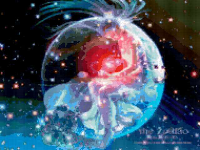 Ориентировочно так, схема вышивки «скорпион», созданная автором Panther, будет выглядеть при отшиве на канве. Размер данной вышивки равен 190x143 крестов, при этом используется 80 цветов. Ключевые слова, по которым можно найти эту схему: знаки зодиака. Также, вы можете взглянуть на оригинальную картинку, соответствующую данной схеме вышивки.
