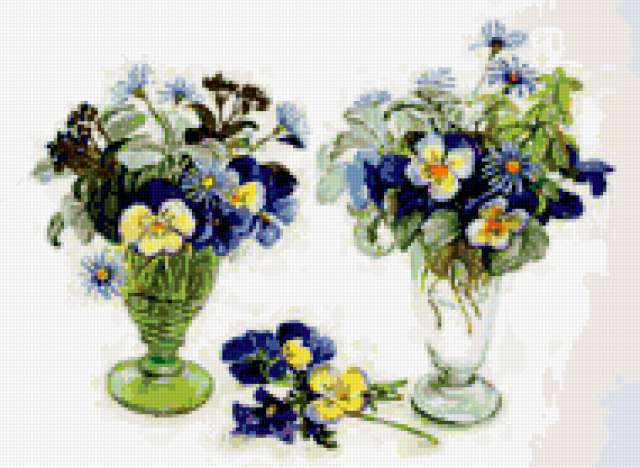 Ориентировочно так, схема вышивки «...в вазе», созданная автором smorodina2410, будет выглядеть при отшиве на канве. Размер данной вышивки равен 190x139 крестов, при этом используется 61 цветов. Ключевые слова, по которым можно найти эту схему: цветы, ваза, стол. Также, вы можете взглянуть на оригинальную картинку, соответствующую данной схеме вышивки.