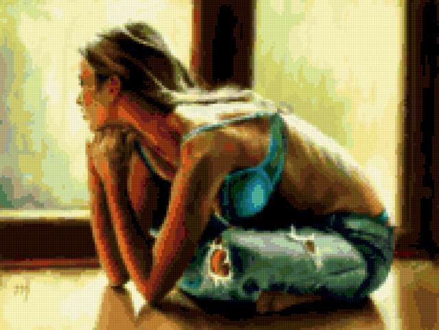 Ориентировочно так, схема вышивки «...», созданная автором Sparrow-Penguin, будет выглядеть при отшиве на канве. Размер данной вышивки равен 190x143 крестов, при этом используется 67 цветов. К несчастью, автор не назначил для схемы ключевые слова. Также, вы можете взглянуть на оригинальную картинку, соответствующую данной схеме вышивки.