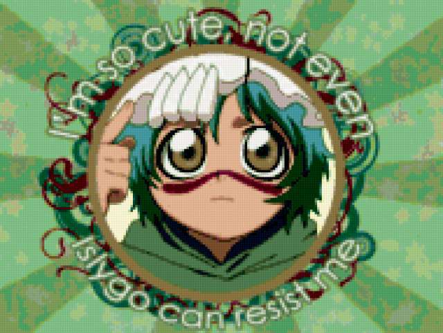 Ориентировочно так, схема вышивки «...», созданная автором Gadriari, будет выглядеть при отшиве на канве. Размер данной вышивки равен 190x143 крестов, при этом используется 70 цветов. Ключевые слова, по которым можно найти эту схему: bleach. Также, вы можете взглянуть на оригинальную картинку, соответствующую данной схеме вышивки.
