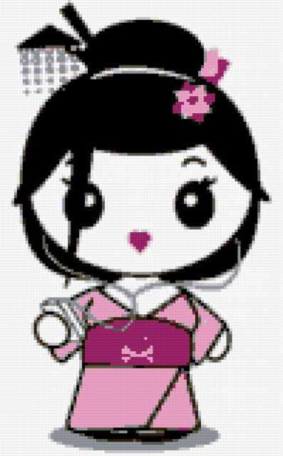 Ориентировочно так, схема вышивки «...», созданная автором kusya, будет выглядеть при отшиве на канве. Размер данной вышивки равен 100x161 крестов, при этом используется 10 цветов. К несчастью, автор не назначил для схемы ключевые слова. Также, вы можете взглянуть на оригинальную картинку, соответствующую данной схеме вышивки.