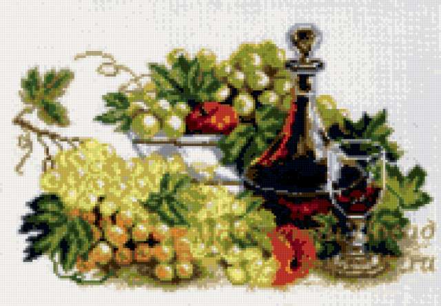 Ориентировочно так, схема вышивки «...», созданная автором gemini6, будет выглядеть при отшиве на канве. Размер данной вышивки равен 190x132 крестов, при этом используется 41 цветов. Ключевые слова, по которым можно найти эту схему: натюрморт кухня. Также, вы можете взглянуть на оригинальную картинку, соответствующую данной схеме вышивки.