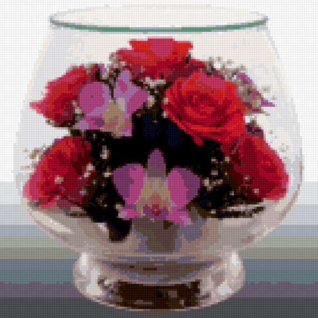 Ориентировочно так, схема вышивки «...», созданная автором gemini6, будет выглядеть при отшиве на канве. Размер данной вышивки равен 140x140 крестов, при этом используется 49 цветов. Ключевые слова, по которым можно найти эту схему: цветы цветок. Также, вы можете взглянуть на оригинальную картинку, соответствующую данной схеме вышивки.