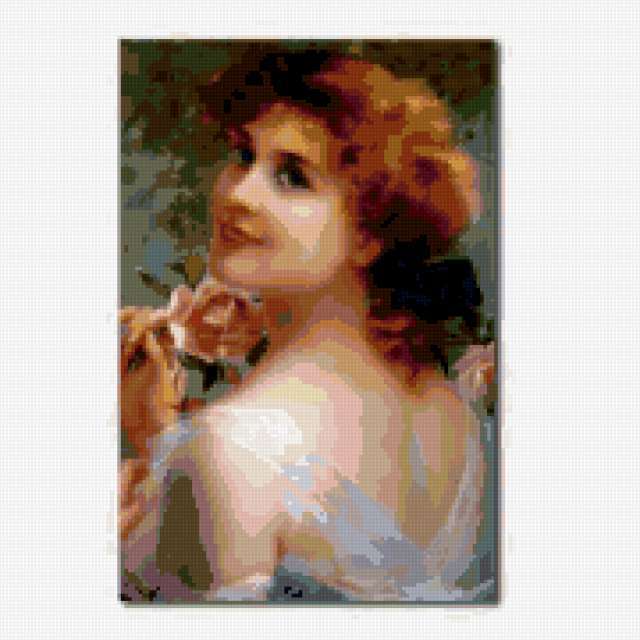 Ориентировочно так, схема вышивки «...», созданная автором gemini6, будет выглядеть при отшиве на канве. Размер данной вышивки равен 180x180 крестов, при этом используется 52 цветов. Ключевые слова, по которым можно найти эту схему: девушка женщина люди рисунок цветок портрет. Также, вы можете взглянуть на оригинальную картинку, соответствующую данной схеме вышивки.