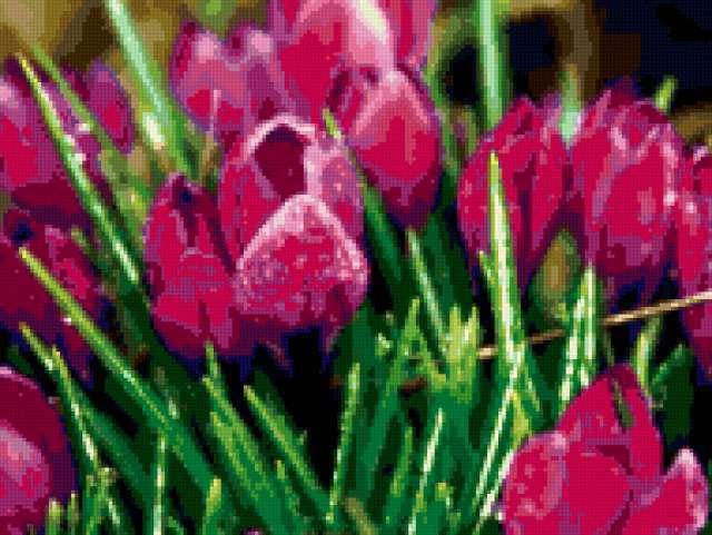 Ориентировочно так, схема вышивки «007», созданная автором 200178, будет выглядеть при отшиве на канве. Размер данной вышивки равен 190x143 крестов, при этом используется 57 цветов. Ключевые слова, по которым можно найти эту схему: цветок, тюльпан, свежесть, красота. Также, вы можете взглянуть на оригинальную картинку, соответствующую данной схеме вышивки.