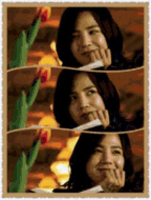 Ориентировочно так, схема вышивки «1», созданная автором kitiara89, будет выглядеть при отшиве на канве. Размер данной вышивки равен 144x190 крестов, при этом используется 62 цветов. К несчастью, автор не назначил для схемы ключевые слова. Также, вы можете взглянуть на оригинальную картинку, соответствующую данной схеме вышивки.