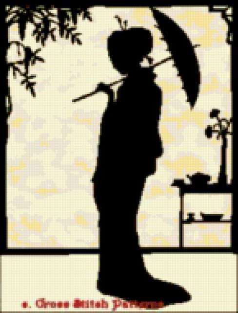 Ориентировочно так, схема вышивки «121», созданная автором girasole, будет выглядеть при отшиве на канве. Размер данной вышивки равен 145x190 крестов, при этом используется 53 цветов. Ключевые слова, по которым можно найти эту схему: восток. Также, вы можете взглянуть на оригинальную картинку, соответствующую данной схеме вышивки.