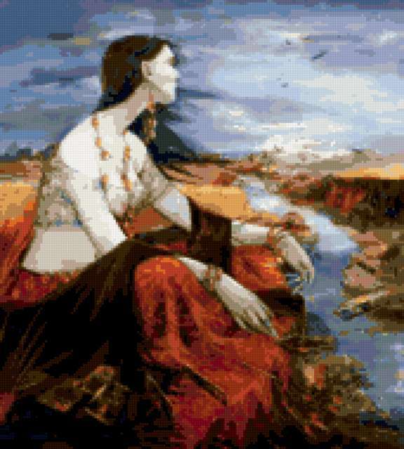 Ориентировочно так, схема вышивки «13-04-11-2», созданная автором OLGABASH, будет выглядеть при отшиве на канве. Размер данной вышивки равен 171x190 крестов, при этом используется 46 цветов. К несчастью, автор не назначил для схемы ключевые слова. Также, вы можете взглянуть на оригинальную картинку, соответствующую данной схеме вышивки.