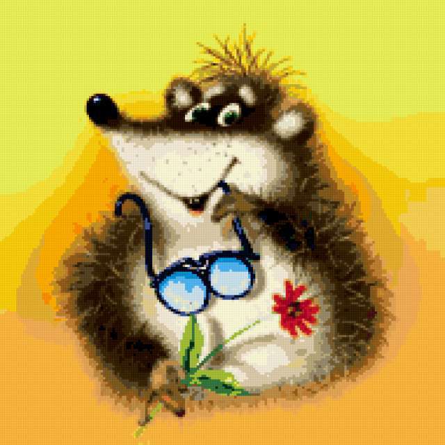 Ориентировочно так, схема вышивки «15989», созданная автором irenidanna, будет выглядеть при отшиве на канве. Размер данной вышивки равен 190x190 крестов, при этом используется 44 цветов. Ключевые слова, по которым можно найти эту схему: подушка, детям, ежик. Также, вы можете взглянуть на оригинальную картинку, соответствующую данной схеме вышивки.