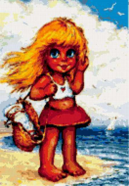 Ориентировочно так, схема вышивки «16», созданная автором DA-NIKA, будет выглядеть при отшиве на канве. Размер данной вышивки равен 132x190 крестов, при этом используется 45 цветов. Ключевые слова, по которым можно найти эту схему: дети, для детей. Также, вы можете взглянуть на оригинальную картинку, соответствующую данной схеме вышивки.