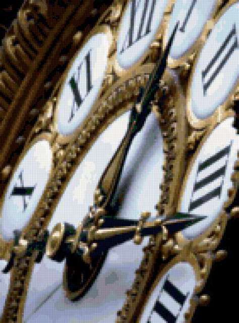 Ориентировочно так, схема вышивки «17», созданная автором ostrovok_a, будет выглядеть при отшиве на канве. Размер данной вышивки равен 141x190 крестов, при этом используется 63 цветов. Ключевые слова, по которым можно найти эту схему: часы, время, куранты. Также, вы можете взглянуть на оригинальную картинку, соответствующую данной схеме вышивки.