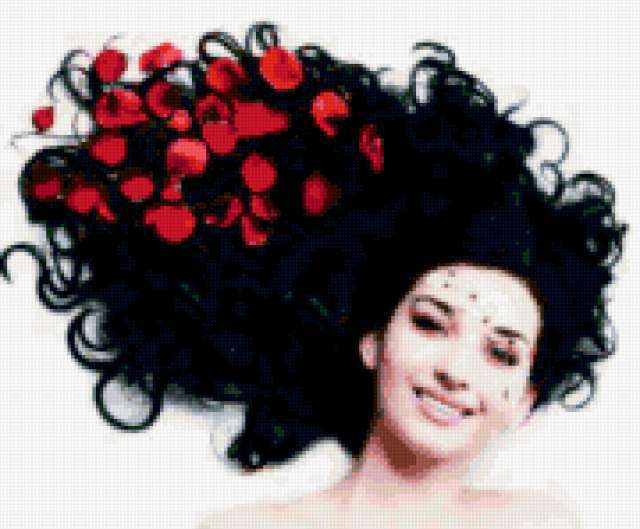 Ориентировочно так, схема вышивки «181», созданная автором Valkiriya, будет выглядеть при отшиве на канве. Размер данной вышивки равен 180x149 крестов, при этом используется 62 цветов. Ключевые слова, по которым можно найти эту схему: девушка. Также, вы можете взглянуть на оригинальную картинку, соответствующую данной схеме вышивки.
