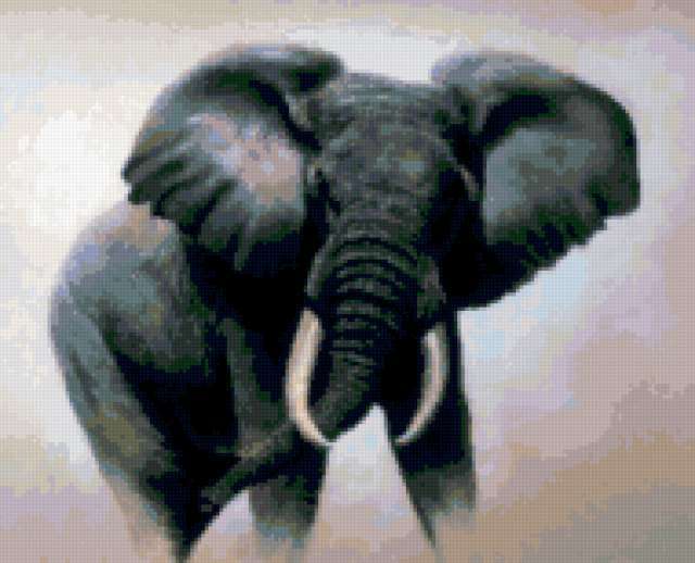 Ориентировочно так, схема вышивки «186», созданная автором Valkiriya, будет выглядеть при отшиве на канве. Размер данной вышивки равен 190x154 крестов, при этом используется 50 цветов. Ключевые слова, по которым можно найти эту схему: слон, животные. Также, вы можете взглянуть на оригинальную картинку, соответствующую данной схеме вышивки.