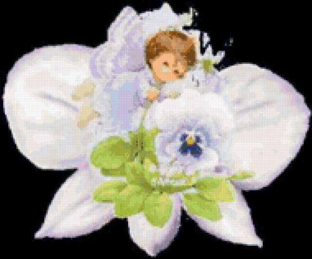 Ориентировочно так, схема вышивки «2», созданная автором xrestheitz, будет выглядеть при отшиве на канве. Размер данной вышивки равен 190x158 крестов, при этом используется 63 цветов. Ключевые слова, по которым можно найти эту схему: ANGEL. Также, вы можете взглянуть на оригинальную картинку, соответствующую данной схеме вышивки.