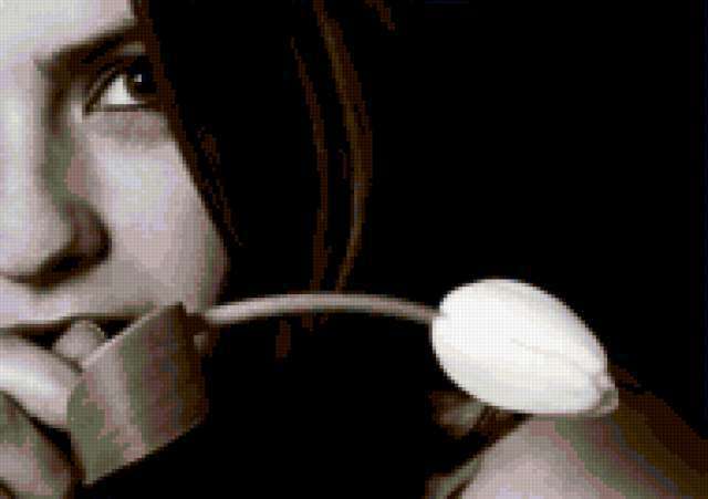 Ориентировочно так, схема вышивки «22», созданная автором tina1983, будет выглядеть при отшиве на канве. Размер данной вышивки равен 190x134 крестов, при этом используется 40 цветов. Ключевые слова, по которым можно найти эту схему: девушка, черно-белое. Также, вы можете взглянуть на оригинальную картинку, соответствующую данной схеме вышивки.