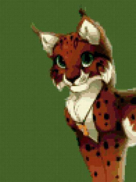 Ориентировочно так, схема вышивки «3», созданная автором Solnyshko24, будет выглядеть при отшиве на канве. Размер данной вышивки равен 98x131 крестов, при этом используется 32 цветов. Ключевые слова, по которым можно найти эту схему: рысь. Также, вы можете взглянуть на оригинальную картинку, соответствующую данной схеме вышивки.