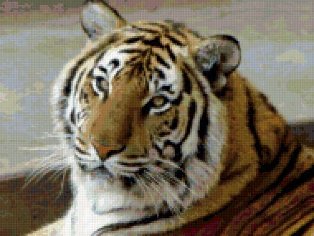 Ориентировочно так, схема вышивки «367», созданная автором luskinagalina, будет выглядеть при отшиве на канве. Размер данной вышивки равен 190x143 крестов, при этом используется 65 цветов. Ключевые слова, по которым можно найти эту схему: тигры. Также, вы можете взглянуть на оригинальную картинку, соответствующую данной схеме вышивки.