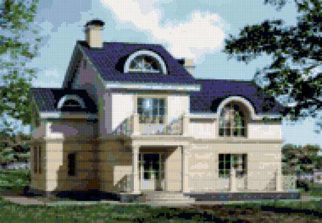 Ориентировочно так, схема вышивки «435», созданная автором irenidanna, будет выглядеть при отшиве на канве. Размер данной вышивки равен 190x132 крестов, при этом используется 53 цветов. Ключевые слова, по которым можно найти эту схему: дом. Также, вы можете взглянуть на оригинальную картинку, соответствующую данной схеме вышивки.