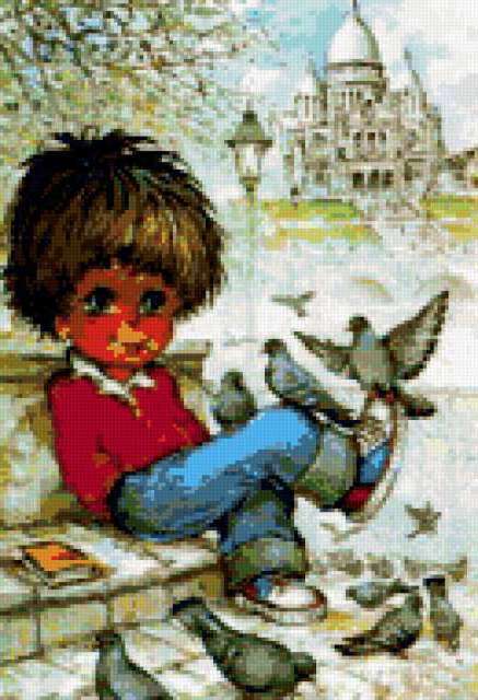 Ориентировочно так, схема вышивки «44», созданная автором DA-NIKA, будет выглядеть при отшиве на канве. Размер данной вышивки равен 130x190 крестов, при этом используется 66 цветов. Ключевые слова, по которым можно найти эту схему: дети, для детей. Также, вы можете взглянуть на оригинальную картинку, соответствующую данной схеме вышивки.