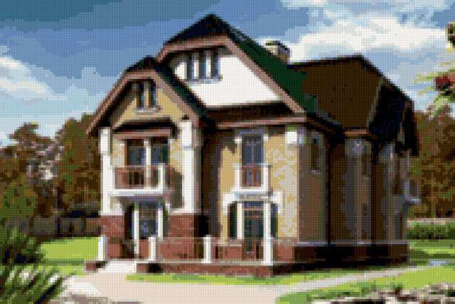 Ориентировочно так, схема вышивки «465», созданная автором irenidanna, будет выглядеть при отшиве на канве. Размер данной вышивки равен 190x127 крестов, при этом используется 56 цветов. Ключевые слова, по которым можно найти эту схему: дом. Также, вы можете взглянуть на оригинальную картинку, соответствующую данной схеме вышивки.