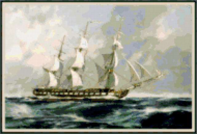 Ориентировочно так, схема вышивки «51243», созданная автором irenidanna, будет выглядеть при отшиве на канве. Размер данной вышивки равен 190x129 крестов, при этом используется 61 цветов. Ключевые слова, по которым можно найти эту схему: море, парусник. Также, вы можете взглянуть на оригинальную картинку, соответствующую данной схеме вышивки.