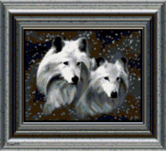 Ориентировочно так, схема вышивки «54727», созданная автором irenidanna, будет выглядеть при отшиве на канве. Размер данной вышивки равен 190x173 крестов, при этом используется 16 цветов. Ключевые слова, по которым можно найти эту схему: фентези, картина, рисунок, животные, волки. Также, вы можете взглянуть на оригинальную картинку, соответствующую данной схеме вышивки.