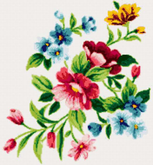 Ориентировочно так, схема вышивки «5489148», созданная автором irenidanna, будет выглядеть при отшиве на канве. Размер данной вышивки равен 176x190 крестов, при этом используется 39 цветов. Ключевые слова, по которым можно найти эту схему: цветы, узор, для скатерти. Также, вы можете взглянуть на оригинальную картинку, соответствующую данной схеме вышивки.