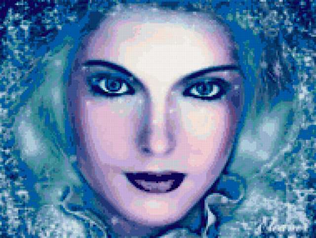 Ориентировочно так, схема вышивки «568», созданная автором irenidanna, будет выглядеть при отшиве на канве. Размер данной вышивки равен 190x143 крестов, при этом используется 53 цветов. Ключевые слова, по которым можно найти эту схему: девушка, фентези. Также, вы можете взглянуть на оригинальную картинку, соответствующую данной схеме вышивки.