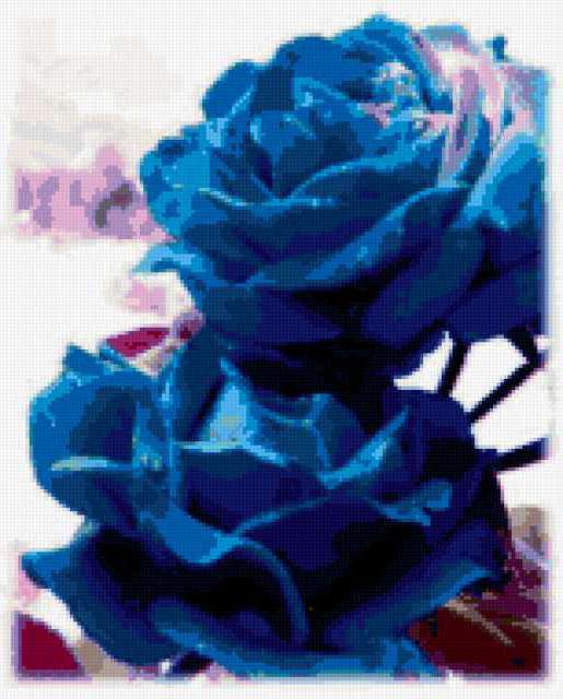 Ориентировочно так, схема вышивки «577», созданная автором Valkiriya, будет выглядеть при отшиве на канве. Размер данной вышивки равен 153x190 крестов, при этом используется 49 цветов. Ключевые слова, по которым можно найти эту схему: розы, цветы, синие розы. Также, вы можете взглянуть на оригинальную картинку, соответствующую данной схеме вышивки.
