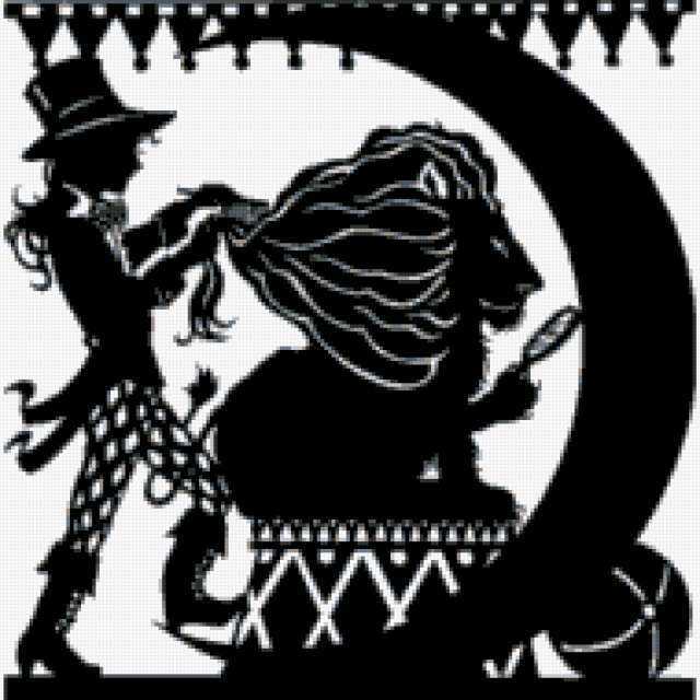 Ориентировочно так, схема вышивки «598198», созданная автором irenidanna, будет выглядеть при отшиве на канве. Размер данной вышивки равен 190x190 крестов, при этом используется 8 цветов. Ключевые слова, по которым можно найти эту схему: черное и белое, силуэты. Также, вы можете взглянуть на оригинальную картинку, соответствующую данной схеме вышивки.