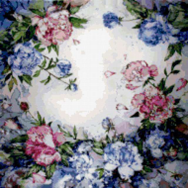 Ориентировочно так, схема вышивки «654918», созданная автором irenidanna, будет выглядеть при отшиве на канве. Размер данной вышивки равен 190x190 крестов, при этом используется 78 цветов. Ключевые слова, по которым можно найти эту схему: цветы, подушка. Также, вы можете взглянуть на оригинальную картинку, соответствующую данной схеме вышивки.