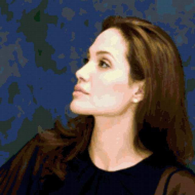 Ориентировочно так, схема вышивки «655555555555», созданная автором natalianet2012, будет выглядеть при отшиве на канве. Размер данной вышивки равен 190x190 крестов, при этом используется 48 цветов. Ключевые слова, по которым можно найти эту схему: анжелина джоли. Также, вы можете взглянуть на оригинальную картинку, соответствующую данной схеме вышивки.