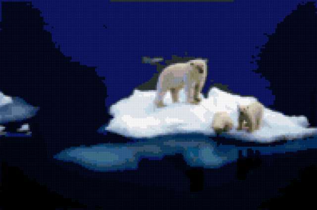 Ориентировочно так, схема вышивки «6655», созданная автором zita, будет выглядеть при отшиве на канве. Размер данной вышивки равен 190x126 крестов, при этом используется 52 цветов. Ключевые слова, по которым можно найти эту схему: медведь, лед, животные. Также, вы можете взглянуть на оригинальную картинку, соответствующую данной схеме вышивки.