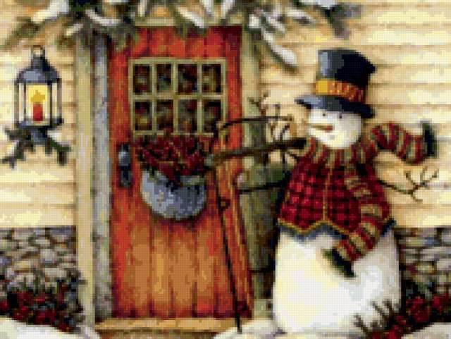 Ориентировочно так, схема вышивки «682», созданная автором Valkiriya, будет выглядеть при отшиве на канве. Размер данной вышивки равен 190x143 крестов, при этом используется 83 цветов. Ключевые слова, по которым можно найти эту схему: снеговик, зима, новый год. Также, вы можете взглянуть на оригинальную картинку, соответствующую данной схеме вышивки.